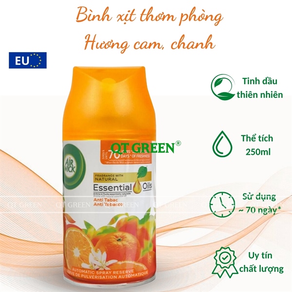 Bình xịt thơm phòng Air Wick Automatic Spray 250ml Anti Tabac - hương cam, chanh - Bình
