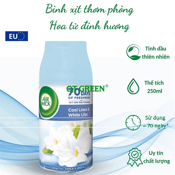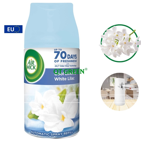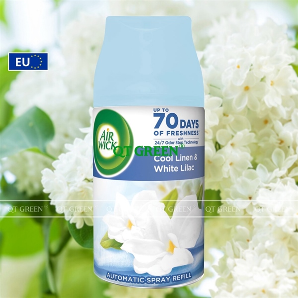 Bình xịt thơm phòng Air Wick Automatic Spray 250ml Cool Linen & White Lilac - hoa tử đinh hương - Bình
