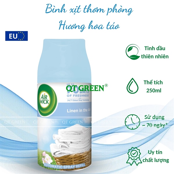 Bình xịt thơm phòng Air Wick Automatic Spray 250ml Linen in the air - hương hoa táo - Bình