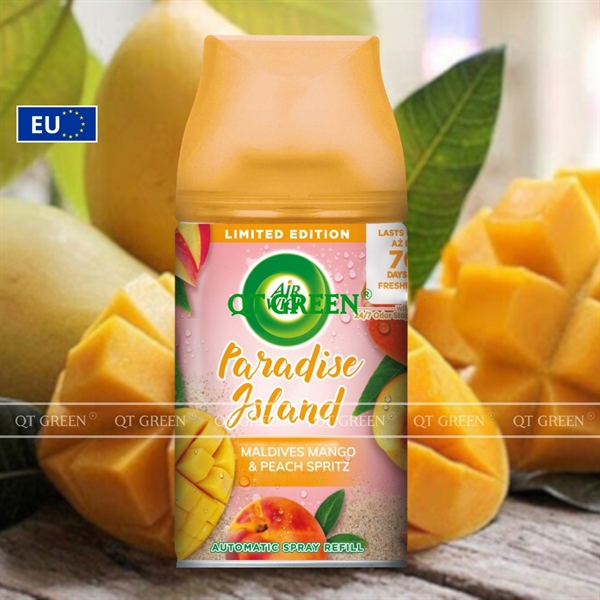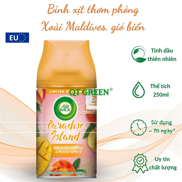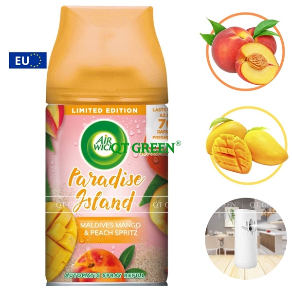 Bình xịt thơm phòng Air Wick Automatic Spray 250ml Maldives Mango & Peach Spritz - xoài Maldives, gió biển - Bình