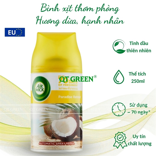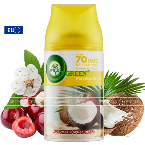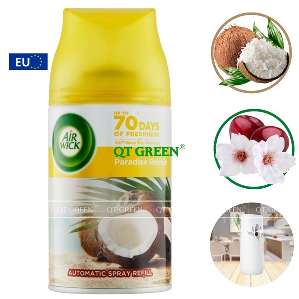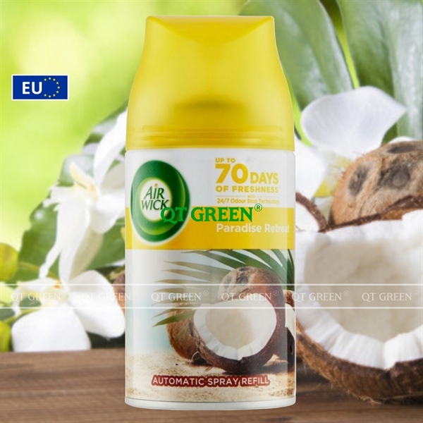 Bình xịt thơm phòng Air Wick Automatic Spray 250ml Paradise Retreat - hương dừa, hạnh nhân - Bình
