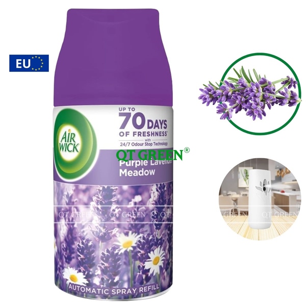Bình xịt thơm phòng Air Wick Automatic Spray 250ml Purple Lavender Meadow - hoa oải hương - Bình