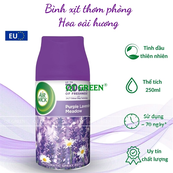 - Bình xịt tinh dầu thiên nhiên Air Wick chỉ chứa tinh dầu không chứa nước, cung cấp tới 70 ngày hương thơm liên tục.