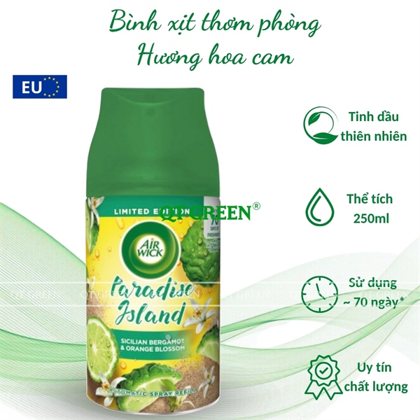 Bình xịt thơm phòng Air Wick Automatic Spray 250ml Sicilian Bergamot & Orange Bloossom - hương hoa cam - Bình