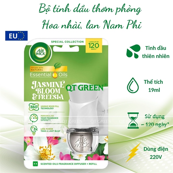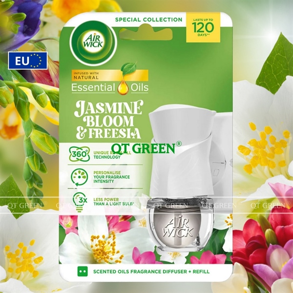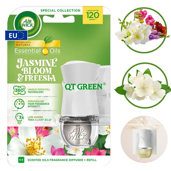 Bộ khuếch tán tinh dầu Air Wick Essential Oils 19ml Jasmine Bloom & Freesia - hoa nhài, lan Nam Phi - Bộ