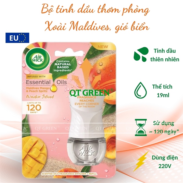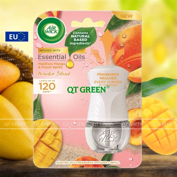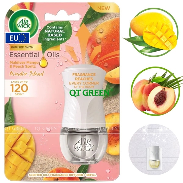 Bộ khuếch tán tinh dầu Air Wick Essential Oils 19ml Maldives Mango & Peach Spritz - xoài Maldives, gió biển - Bộ
