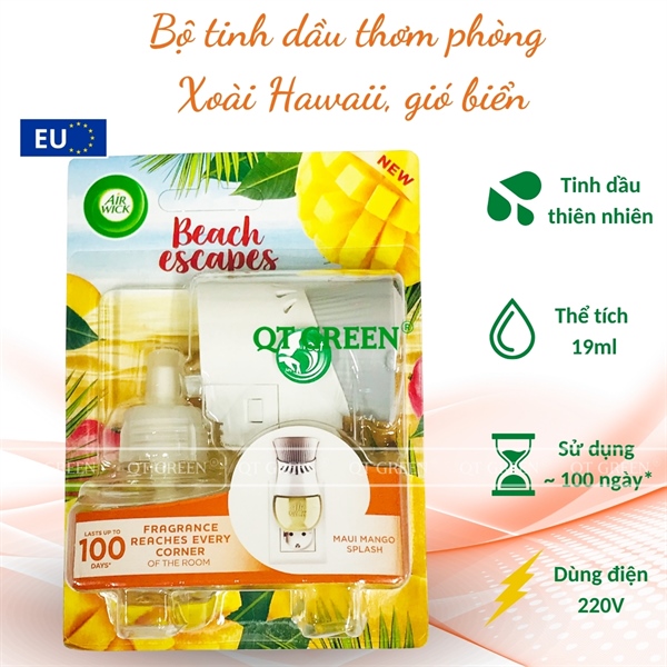 Bộ khuếch tán tinh dầu Air Wick Essential Oils 19ml Maui Mango Splash 19ml - xoài Hawaii, gió biển - Bộ