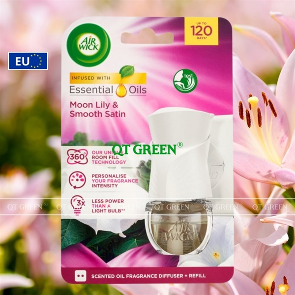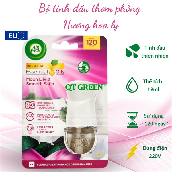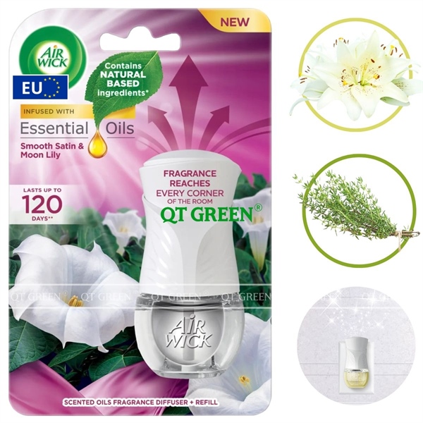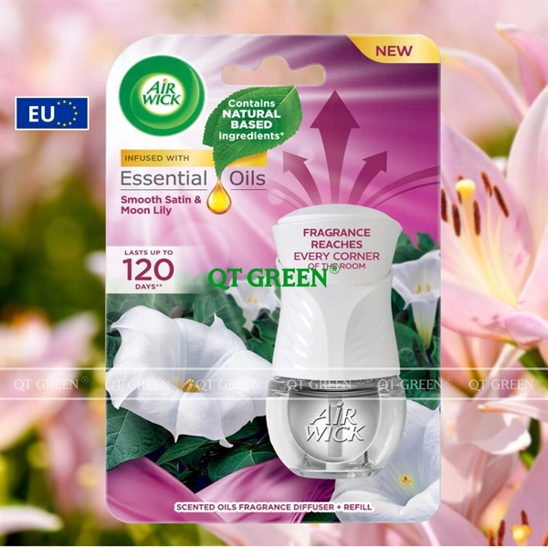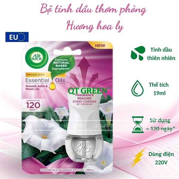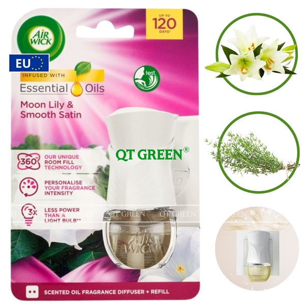 Bộ khuếch tán tinh dầu Air Wick Essential Oils 19ml Smooth Satin & Moon Lily - hương hoa ly - Bộ