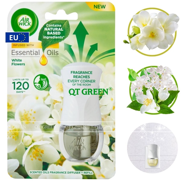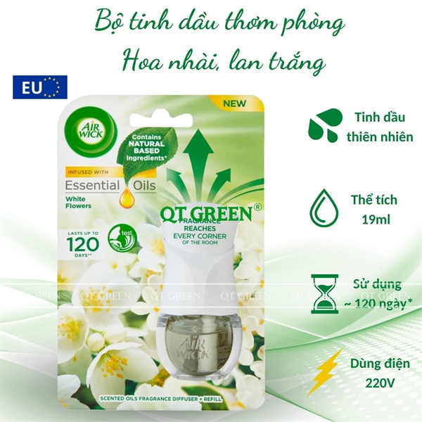 Bộ khuếch tán tinh dầu Air Wick Essential Oils 19ml White Flowers - hoa nhài, lan trắng - Bộ