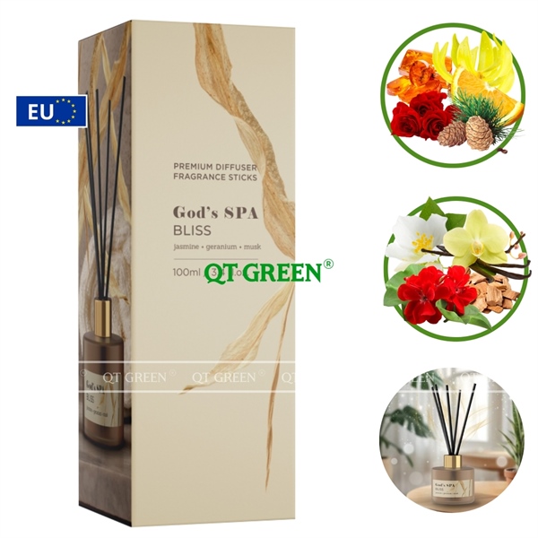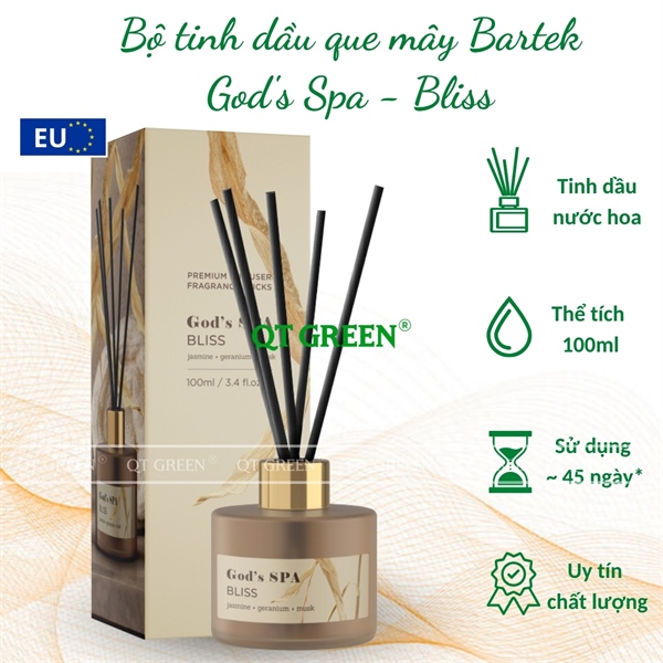 Bộ khuếch tán tinh dầu que mây Bartek Premium Diffuser Fragrance Sticks 100ml God's Spa - Bộ