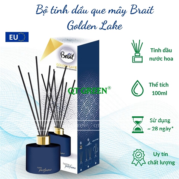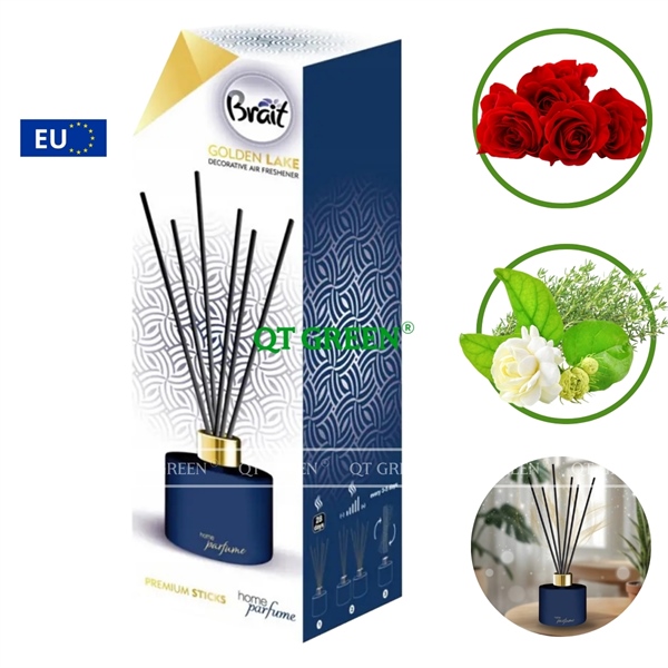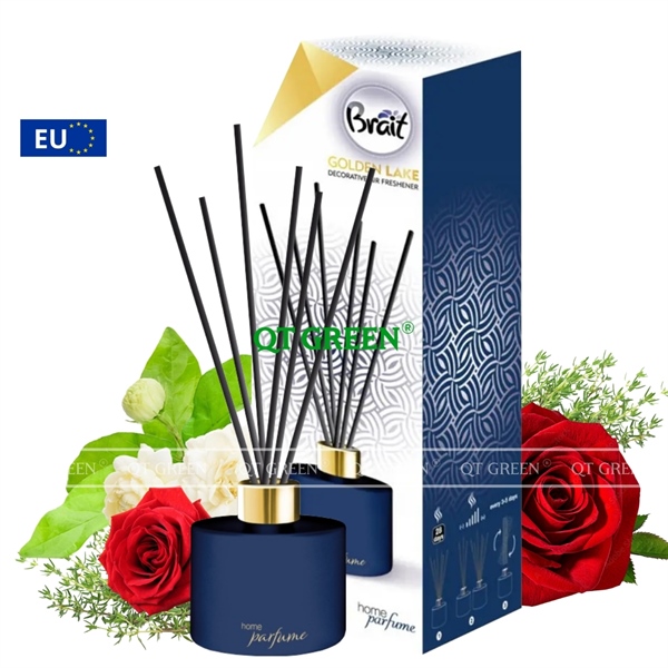 Bộ khuếch tán tinh dầu que mây Brait Premium Sticks Decorative Air Freshener 100ml Golden Lake - hoa hồng, nhài, xạ hương - Bộ