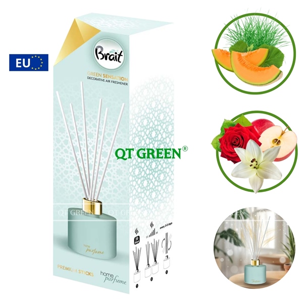- Thiết kế đơn giản thanh lịch đầy phong cách của bộ khuếch tán que mây với tông màu bạc hà nhạt kết hợp với điểm nhấn màu vàng, Brait Green Sensation là một phụ kiện decor mang đến sự tinh tế cho nội thất hoàn hảo, hoàn toàn phù hợp với xu hướng trang trí nhà hiện đại.