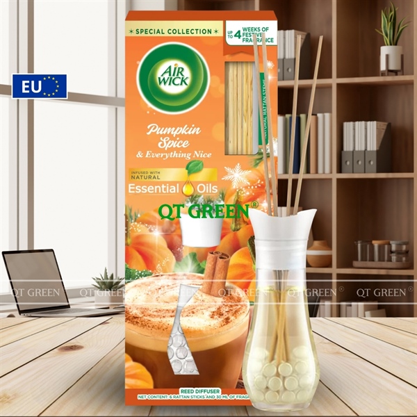 Bộ khuếch tán tinh dầu que mây Air Wick Reed Diffuser Essential Oils 25ml Pumpkin Spice - gừng, quế, bí ngô