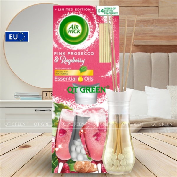 Bộ khuếch tán tinh dầu que mây Air Wick Reed Diffuser Essential Oils 25ml Pink Prosecco & Rapberry - quả mâm xôi