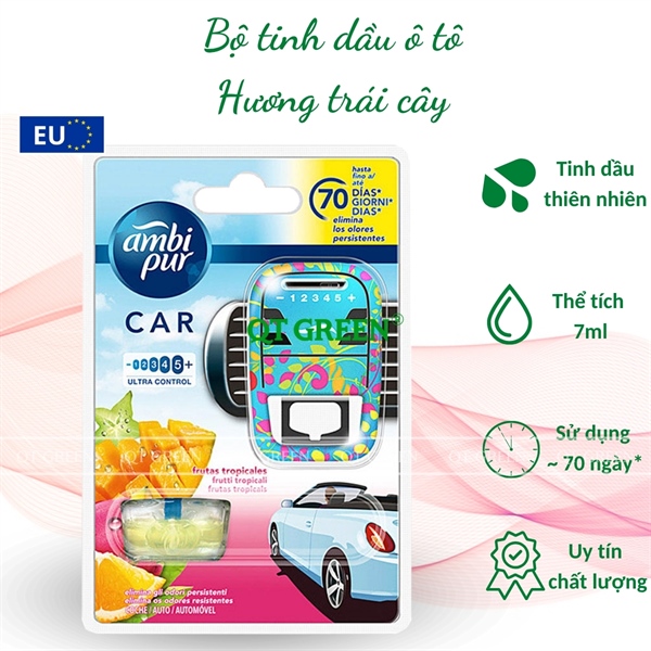 Bộ tinh dầu thơm ô tô Ambi Pur 7ml Fruity Tropics - hương trái cây - Bộ