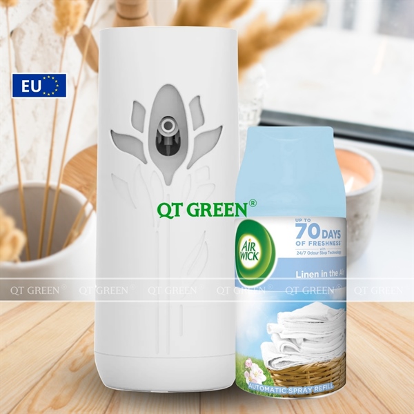 Bộ xịt phòng tự động Air Wick Automatic Spray 250ml Linen in the air - hương hoa táo