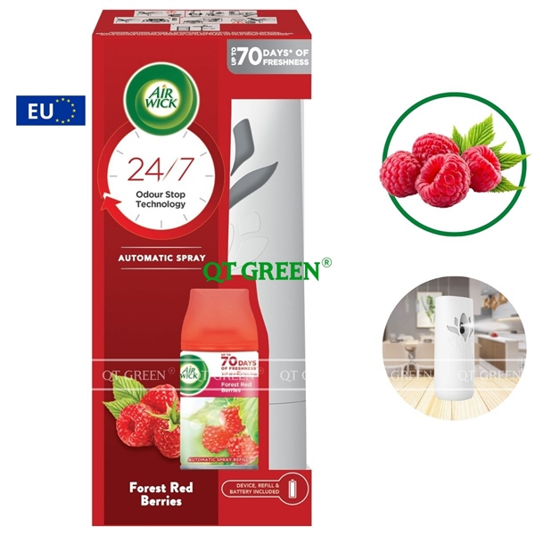 Bộ xịt phòng tự động Air Wick Automatic Spray 250ml Forest Red Berries - quả mâm xôi rừng - Bộ