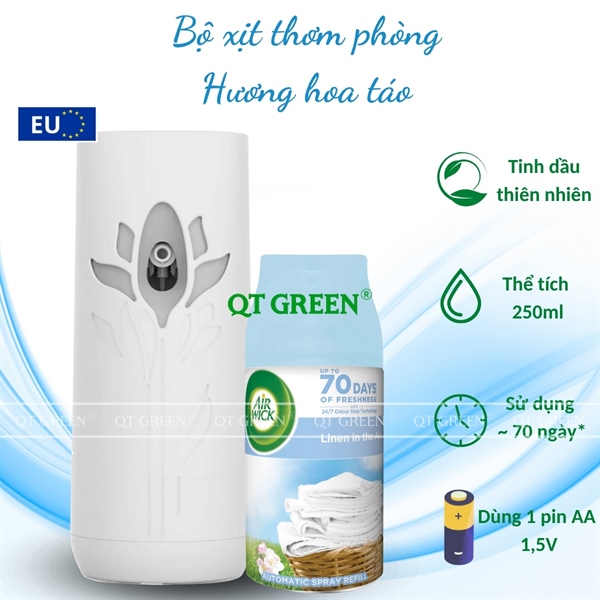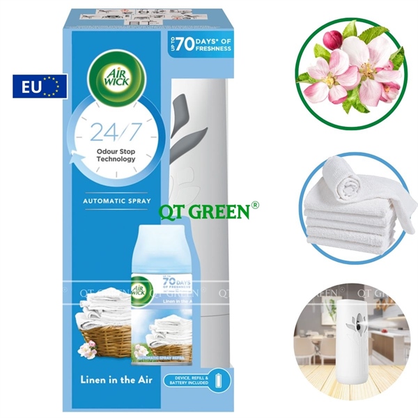Bộ xịt phòng tự động Air Wick Automatic Spray 250ml Linen in the air - hương hoa táo - Bộ