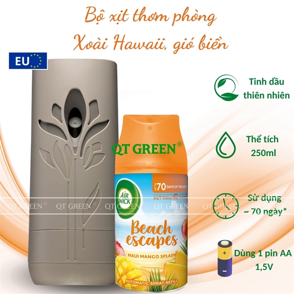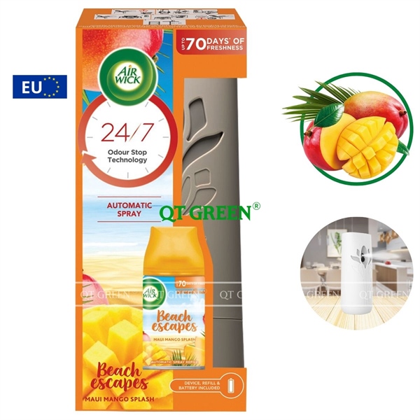 Bộ xịt phòng tự động Air Wick Automatic Spray 250ml Maui Mango Splash - xoài Hawaii, gió biển - Bộ