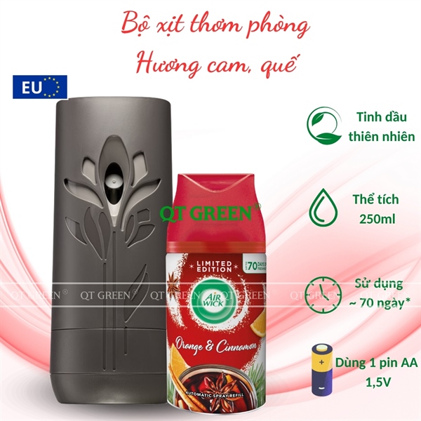 Bộ xịt phòng tự động Air Wick Automatic Spray 250ml Orange & Cinnamon - hương cam, quế - Bộ