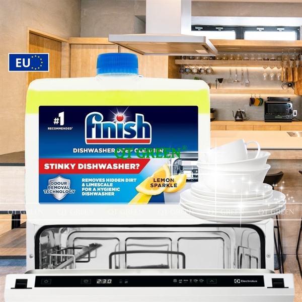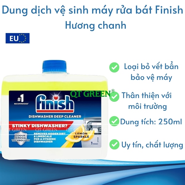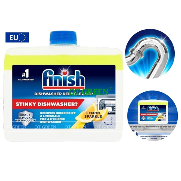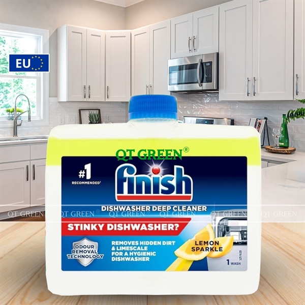 - Dung dịch vệ sinh máy rửa bát Finish Deep Cleaner loại bỏ hoàn toàn cặn vôi, vết bẩn dầu mỡ hay những vết bẩn cứng đầu khác ngay cả ở những bộ phận khó tiếp cận như vòi phun, ống dẫn, các bộ lọc hay hệ thống sưởi.