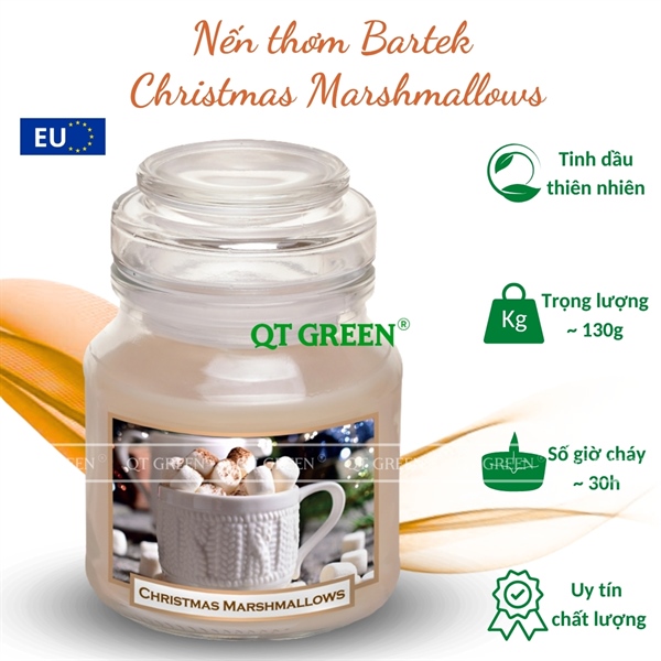 Hũ nến thơm Bartek Scented Candles 130g Christmas Marshmallows - sôcôla, vani - Hũ
