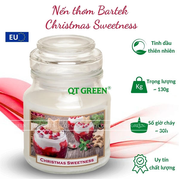 Hũ nến thơm Bartek Scented Candles 130g Christmas Sweetness - bánh gừng, nho chuỗi ngọc - Hũ