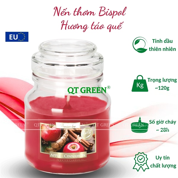 Hũ nến thơm Bispol Scented Candles 120g Apple Cinnamon - hương táo quế - Hũ