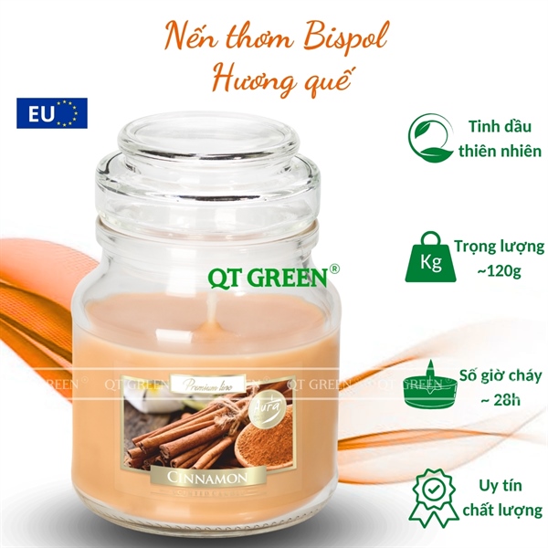 Hũ nến thơm Bispol Scented Candles 120g Cinamon - hương quế - Hũ