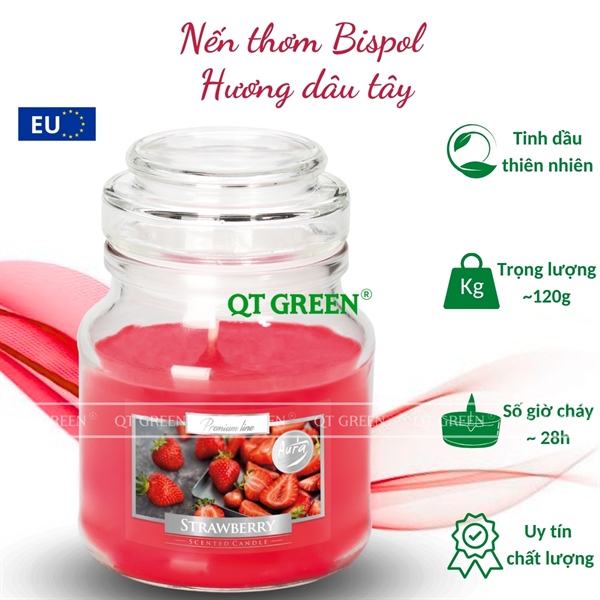 Hũ nến thơm Bispol Scented Candles 120g Strawberry - hương dâu tây - Hũ