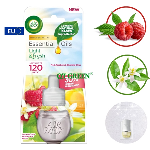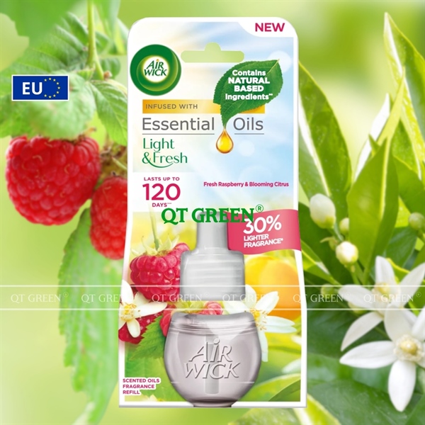 Lọ tinh dầu thơm phòng Air Wick Essential Oils 19ml Fresh Raspberry & Blooming Citrus - hoa cam, mâm xôi - Lọ