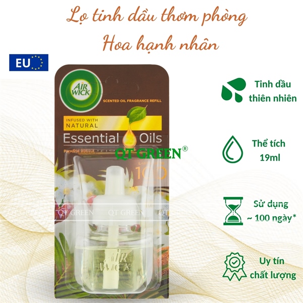 Lọ tinh dầu thơm phòng Air Wick Essential Oils 19ml Paradise Retreat - hoa hạnh nhân - Lọ