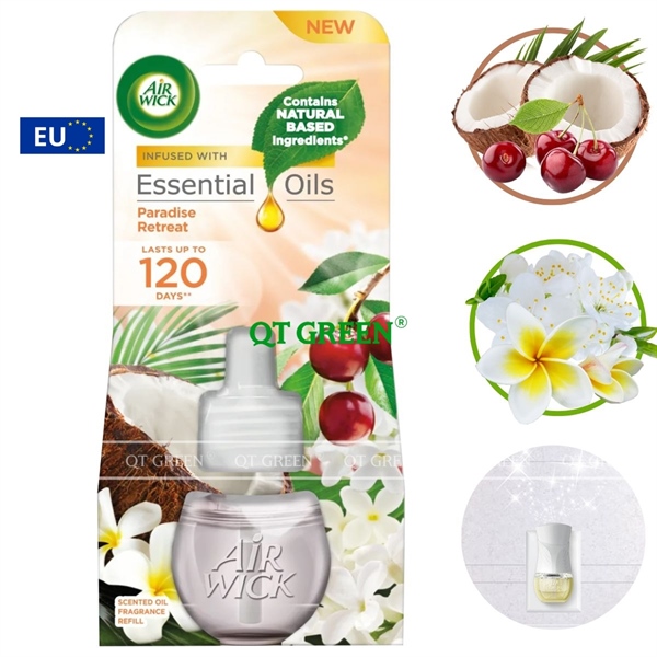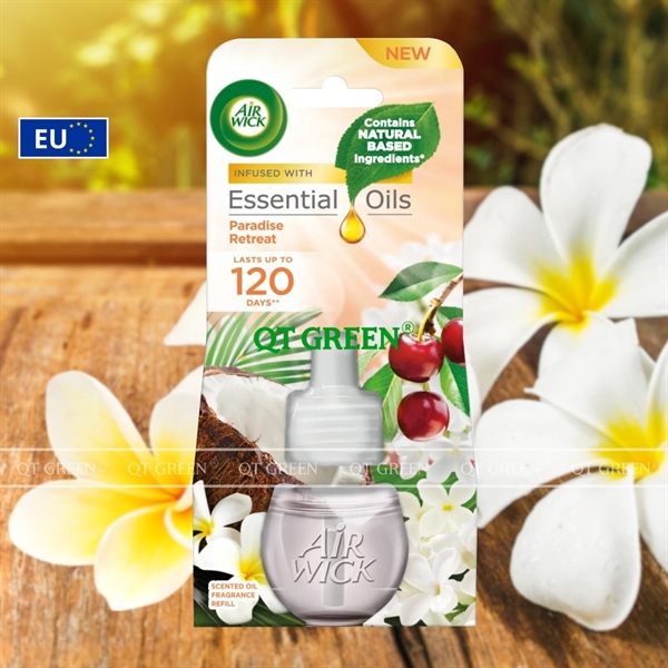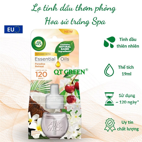 Lọ tinh dầu thơm phòng Air Wick Essential Oils 19ml Paradise Retreat - hoa sứ trắng Spa - Lọ