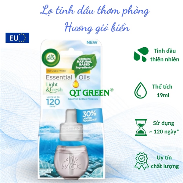 Lọ tinh dầu thơm phòng Air Wick Essential Oils 19ml Sea Mist & Blue Minerals - hương gió biển - Lọ