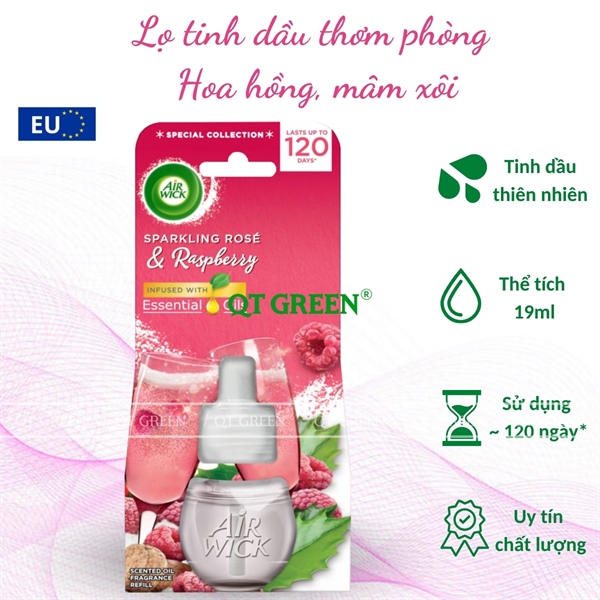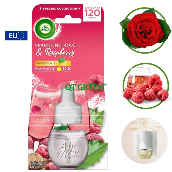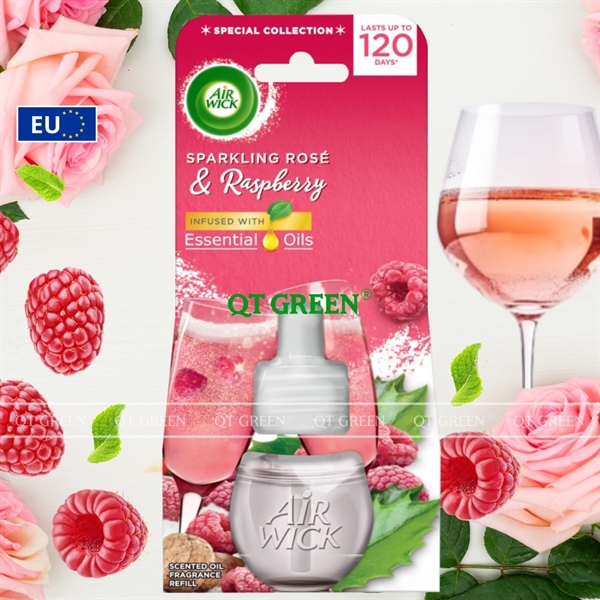 Lọ tinh dầu thơm phòng Air Wick Essential Oils 19ml Sparkling Rose & Raspberry - hoa hồng, mâm xôi - Lọ