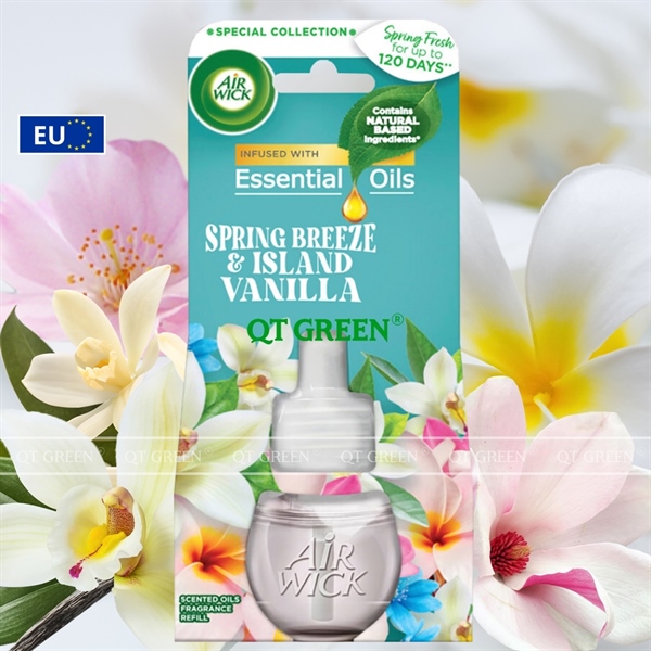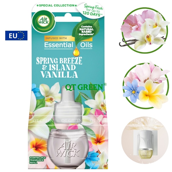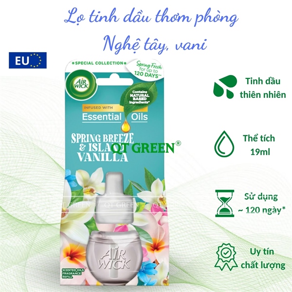 Lọ tinh dầu thơm phòng Air Wick Essential Oils 19ml Spring Breeze & Island Vanilla - nghệ tây, vani - Lọ