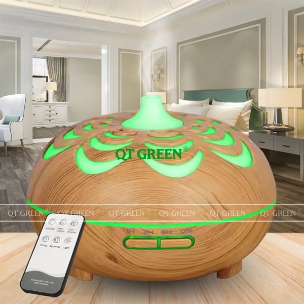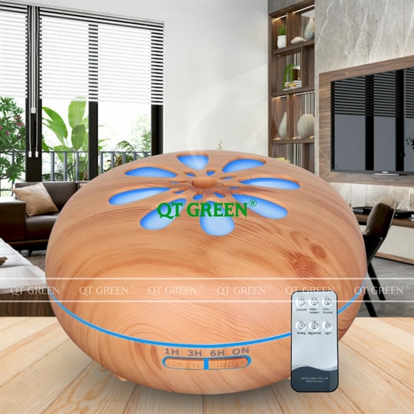 Máy khuếch tán tinh dầu Saparoma Scent Diffuser 550ml - Hoa Sen tròn vân gỗ vàng