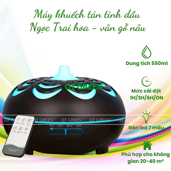 Máy khuếch tán tinh dầu Saparoma Scent Diffuser 550ml - Ngọc Trai hoa vân gỗ nâu