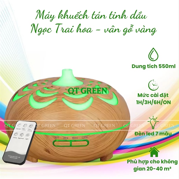 Máy khuếch tán tinh dầu Saparoma Scent Diffuser 550ml - Ngọc Trai hoa vân gỗ vàng