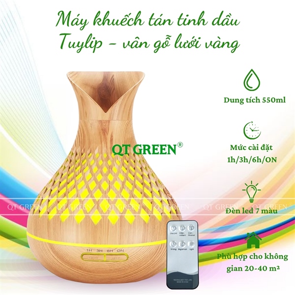 Máy khuếch tán tinh dầu Saparoma Scent Diffuser 550ml - Tuylip lưới vân gỗ vàng - Cái