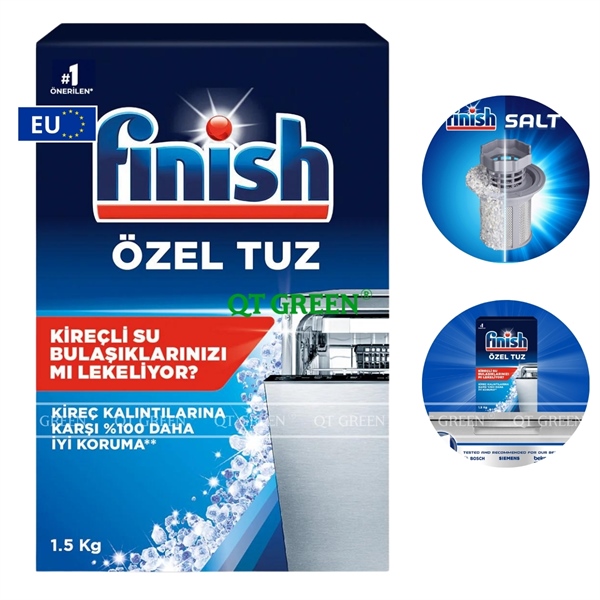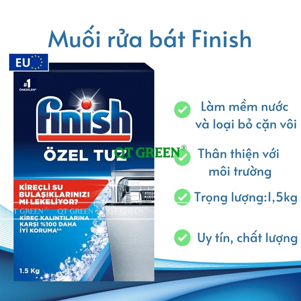 - Muối rửa bát Finish là sản phẩm chuyên dụng giúp làm mềm nước, với thành phần là natri clorua không chất phụ gia dễ dàng hòa tan, giúp ngăn ngừa cặn vôi và bảo vệ toàn diện máy rửa bát khỏi các tác nhân gây hại từ nước cứng