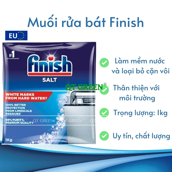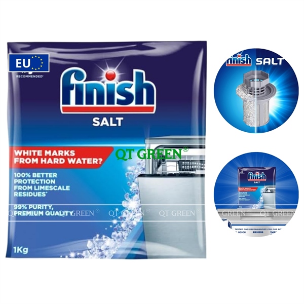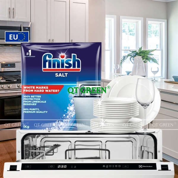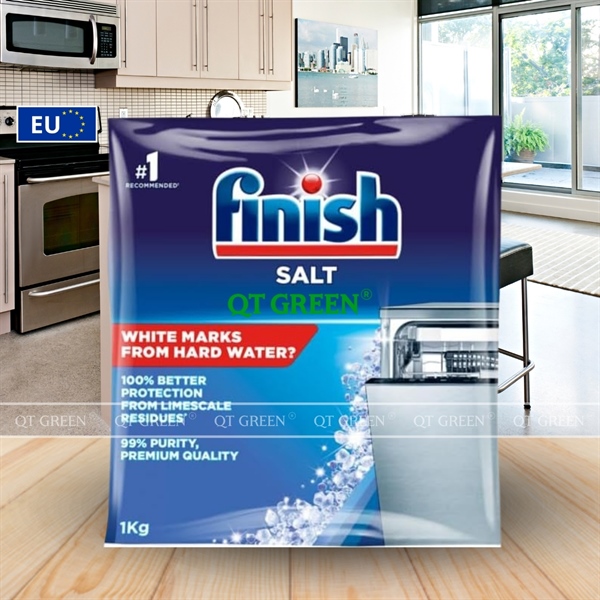 - Muối rửa bát Finish là sản phẩm chuyên dụng giúp làm mềm nước, với thành phần là natri clorua không chất phụ gia dễ dàng hòa tan, giúp ngăn ngừa cặn vôi và bảo vệ toàn diện máy rửa bát khỏi các tác nhân gây hại từ nước cứng