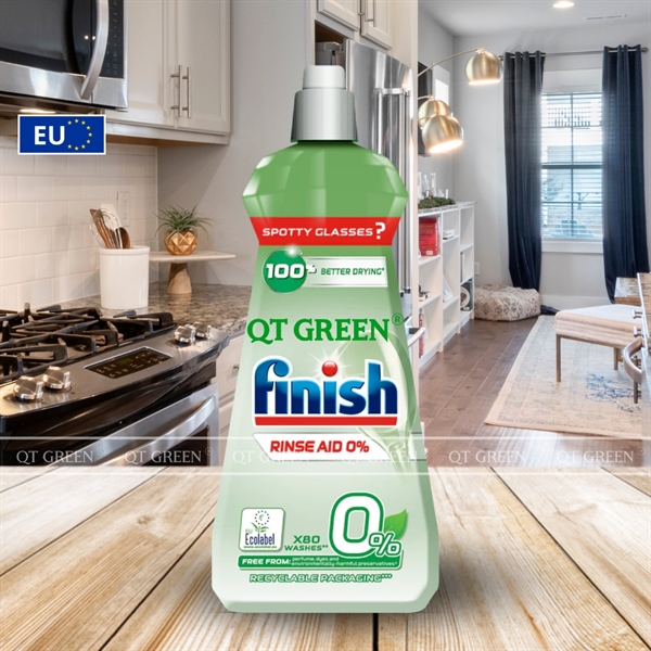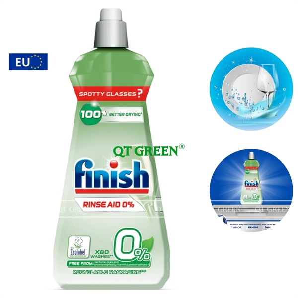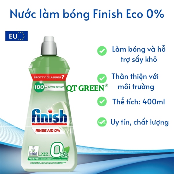 Nước làm bóng và khô bát đĩa Finish Dishwasher Rinse Aid Eco 400ml 0% (là chất trợ xả cao cấp chuyên dùng cho máy rửa bát)
