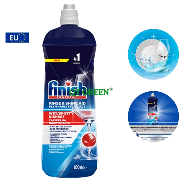 Nước làm bóng và khô bát đĩa Finish Dishwasher Rinse & Shine Aid 800ml (là chất trợ xả cao cấp chuyên dùng cho máy rửa bát)