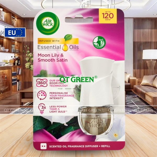 Bộ khuếch tán tinh dầu Air Wick Essential Oils 19ml Smooth Satin & Moon Lily - hương hoa ly