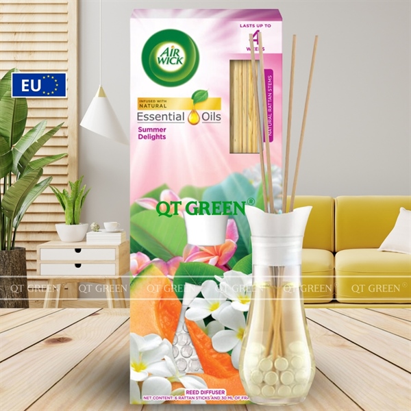 Bộ khuếch tán tinh dầu que mây Air Wick Reed Diffuser Essential Oils 25ml Summer Delights - hoa lan trắng, dưa gang