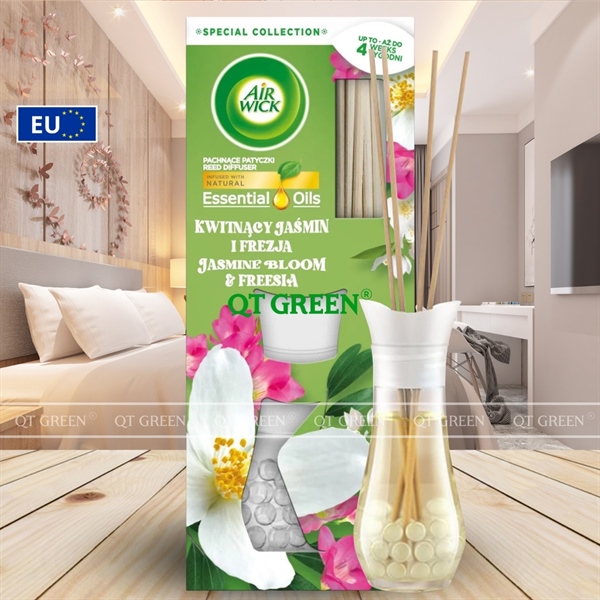 Bộ khuếch tán tinh dầu que mây Air Wick Reed Diffuser Essential Oils 25ml Jasmine Bloom & Freesia - hoa nhài, lan Nam Phi
