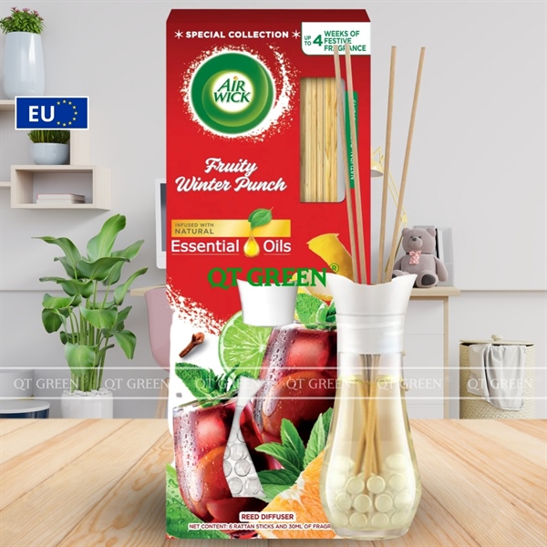 Bộ khuếch tán tinh dầu que mây Air Wick Reed Diffuser Essential Oils 25ml Fruity Winter Punch - cam, chanh, đinh hương