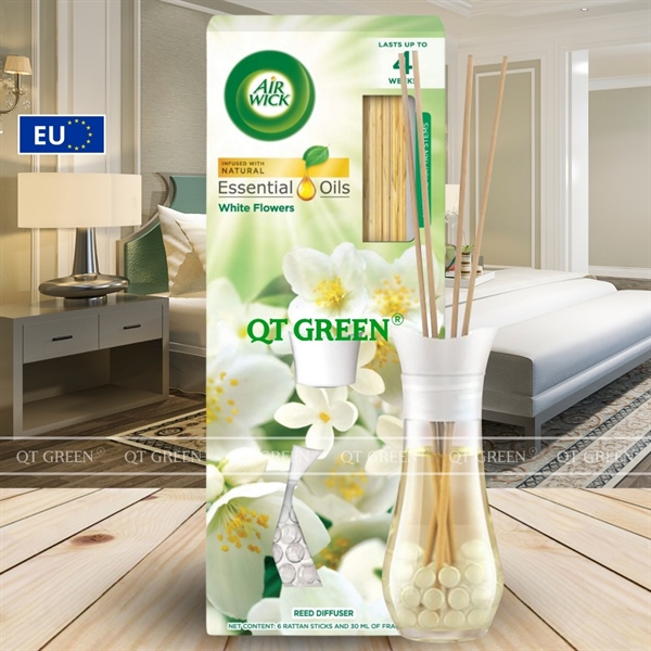 Bộ khuếch tán tinh dầu que mây Air Wick Reed Diffuser Essential Oils 25ml White Flowers - hoa nhài, lan trắng