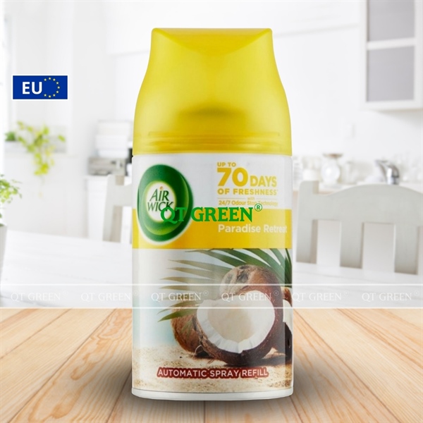 Bình xịt thơm phòng Air Wick Automatic Spray 250ml Paradise Retreat - hương dừa, hạnh nhân